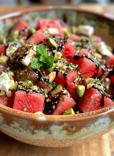 Watermelon Feta Mint Salad with Balsamic Glaze & Pistachios