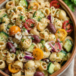 Whether served as a main dish or a vibrant side, this pasta salad is sure to be a crowd-pleaser. Embrace the flavors of Greece in your kitchen, and revel in the joy of sharing this delightful salad with family and friends.