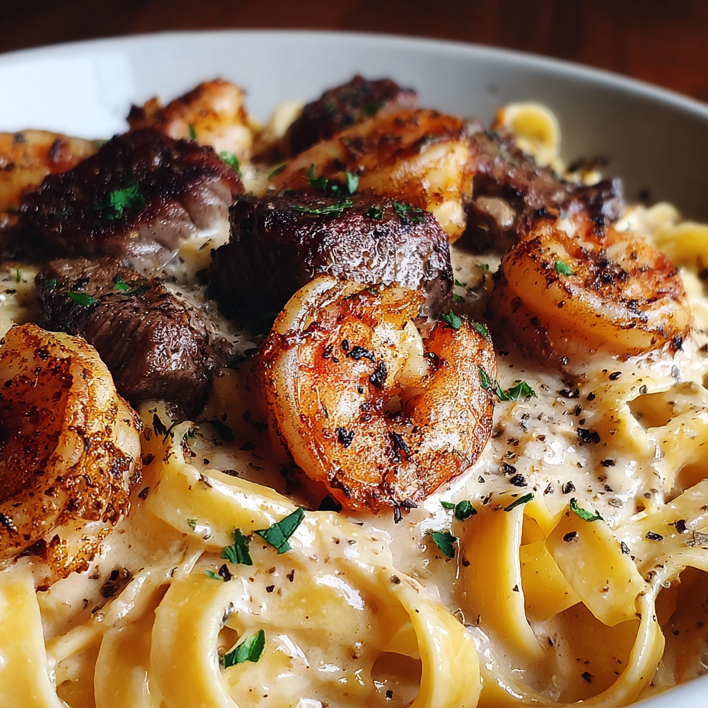 This recipe brings together succulent shrimp and juicy steak, creating a perfect harmony of proteins that pair beautifully with creamy pasta. Whether you're a seasoned chef or a home cook looking to impress, this dish will surely become a favorite at your table.