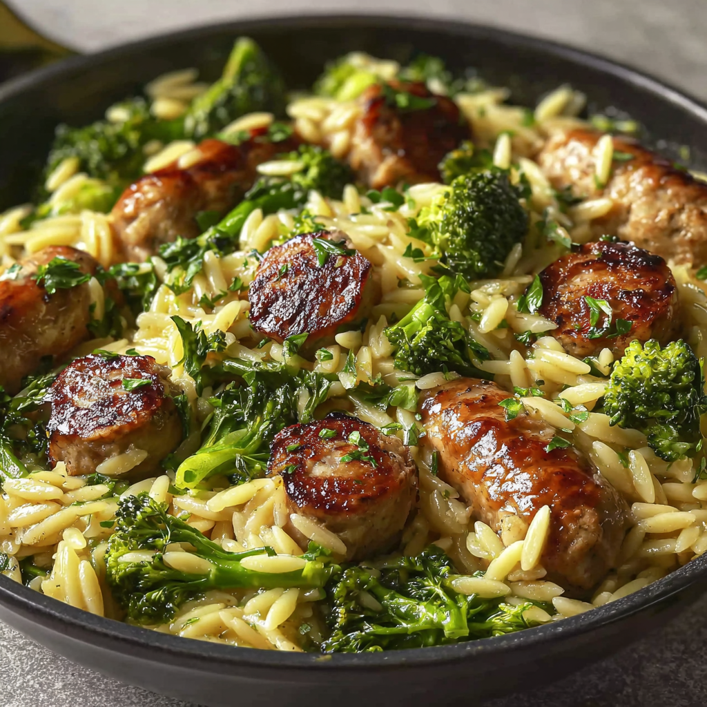 Chicken Sausage and Broccoli Orzo Dinner Delight