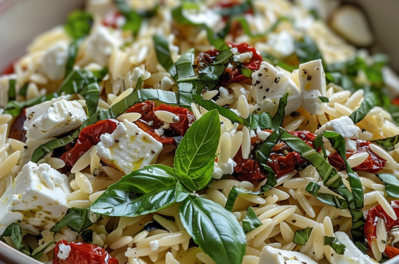 Orzo Pasta Salad with Feta and Sun Dried Tomatoes