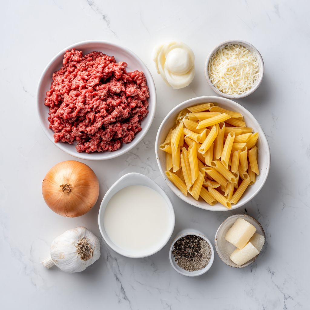 Ground beef serves as the protein base for this dish, providing richness and a satisfying texture. Its fat content will also help enhance the overall creaminess of the sauce. - 12 ounces pasta (penne or elbow)