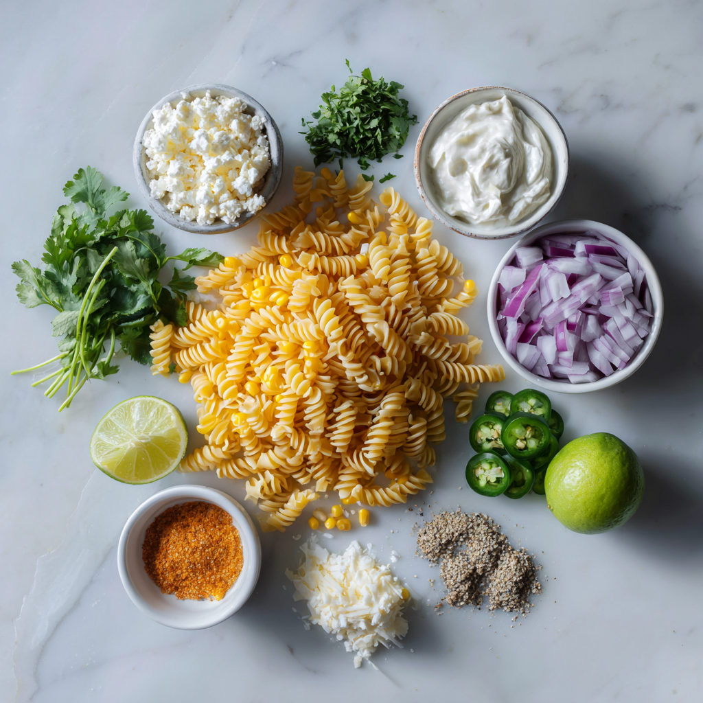 To create this flavorful Creamy Street Corn Pasta Salad, you’ll need: