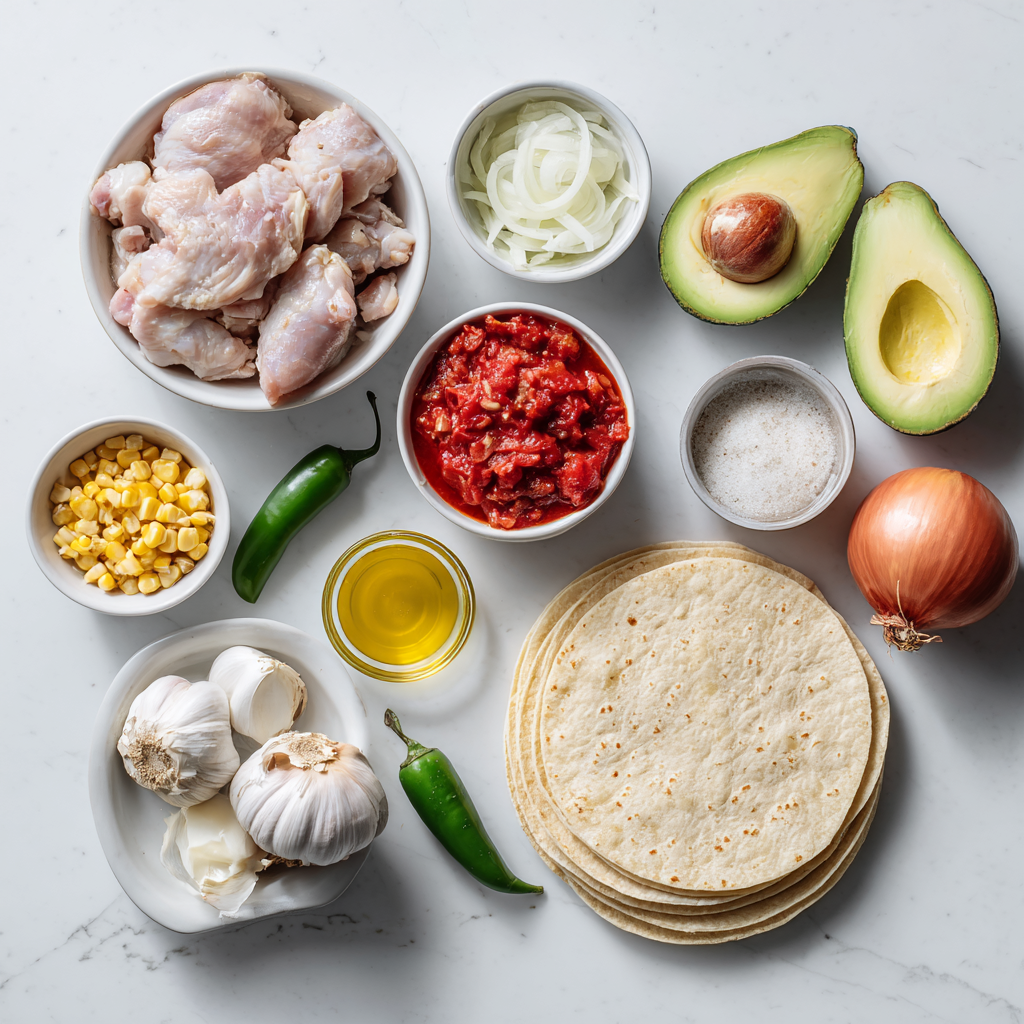 Corn tortillas serve as the perfect vehicle for holding the chicken and crema. They have a distinct flavor and texture that pairs well with the fillings. - 1 ripe avocado