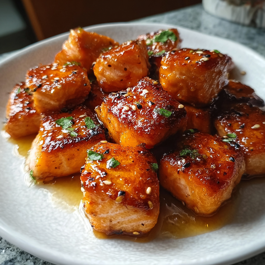 - Drizzle hot honey over the salmon bites before serving.