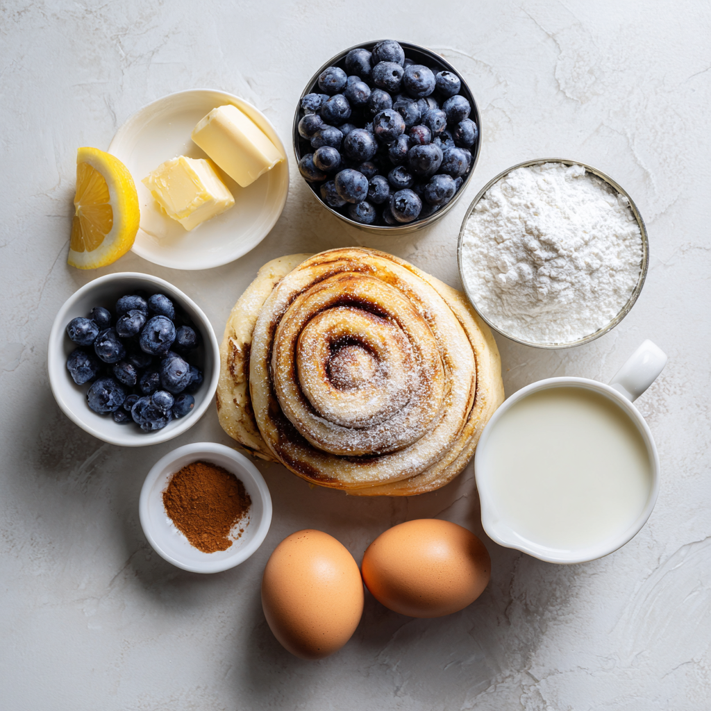 Ground cinnamon infuses the dish with its signature warm spice, complementing the sweetness of the blueberries and the cinnamon rolls. It’s essential for creating that classic cinnamon roll flavor. - 1/2 cup powdered sugar