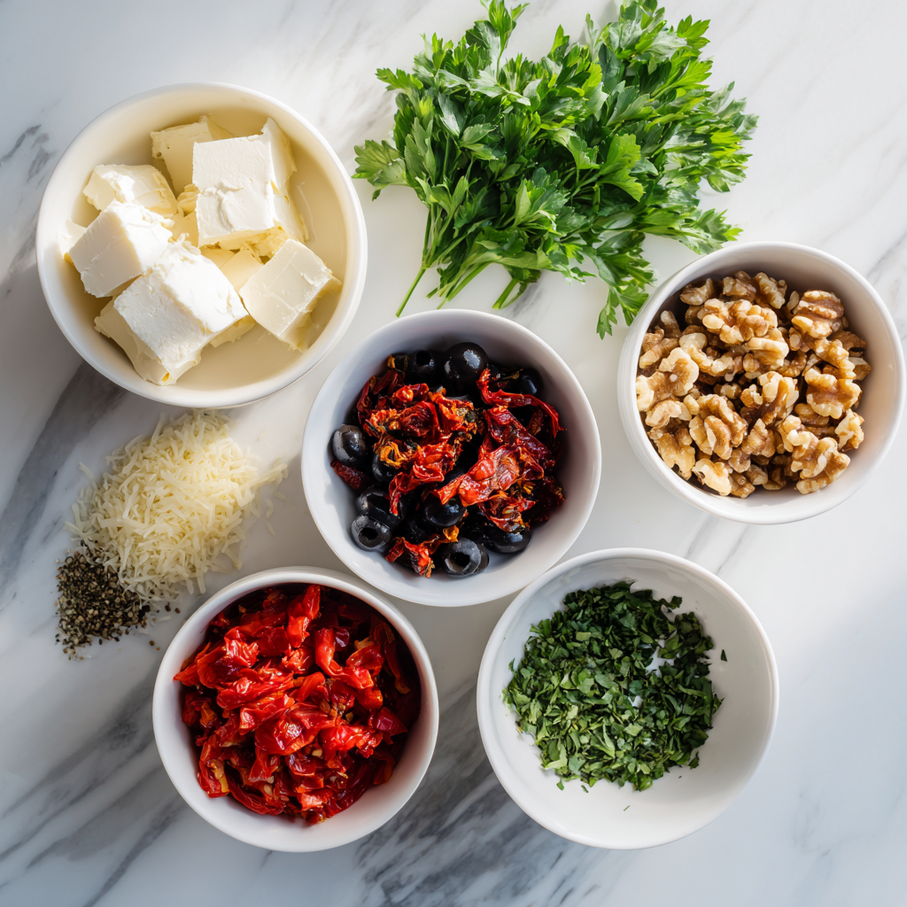 Olives introduce a briny, tangy element that contrasts beautifully with the creaminess of the cheese. Their variety adds depth, offering different textures and flavors. - 1/2 cup sun-dried tomatoes, chopped