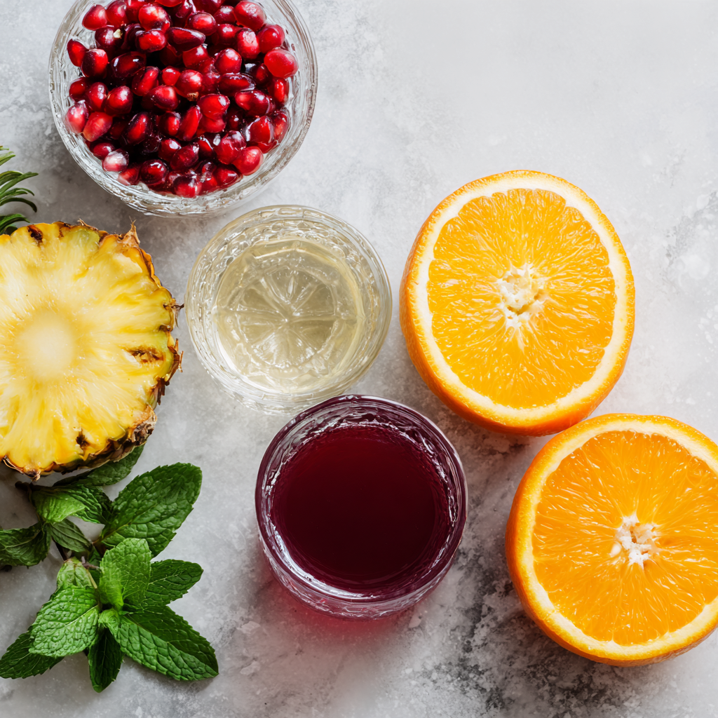 Sweet and bright, orange juice rounds out the flavors, adding a zesty note that complements the cranberry. It also contributes vitamin C, making the punch refreshing and uplifting. - 1 cup pineapple juice