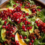 Using fresh seasonal ingredients, this salad combines the sweet-tartness of pomegranates with crisp greens and a robust dressing. Perfect as a refreshing side or a light main, you’ll find that this dish is as pleasing to the eye as it is to the palate. Let’s dive into the bright and zesty world of this seasonal delight.