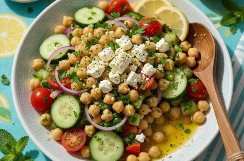 Some salads are just a sad obligation—watery lettuce and a few mealy tomatoes thrown together because you “should” eat healthy. This Mediterranean Chickpea Salad with Feta & Cucumber is the complete opposite. It’s the kind of meal that makes you actually crave vegetables. It relies on a simple but critical formula: fat, acid, salt, and texture.