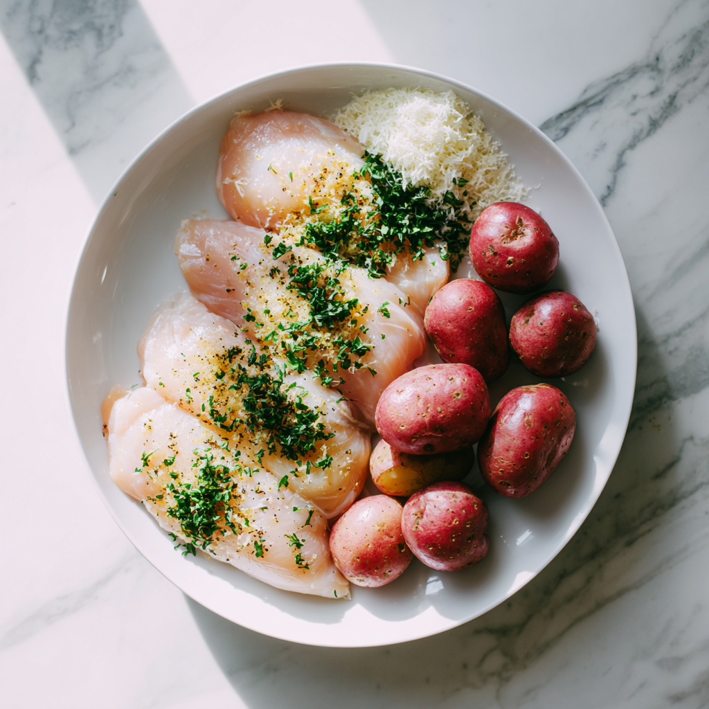 Ingredients for Garlic Parmesan Crockpot Chicken and Potatoes
