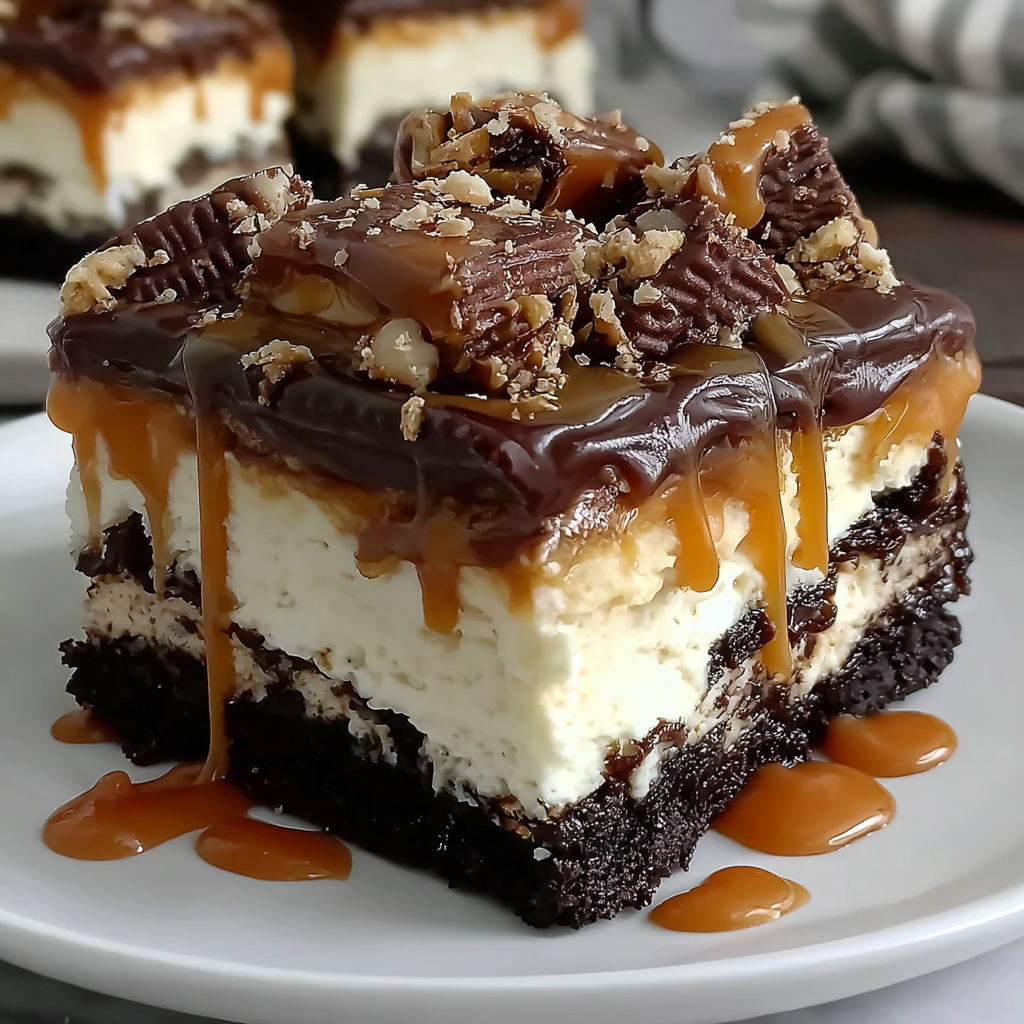 As you prepare to create this delightful masterpiece, you’ll find that each component plays a crucial role. From the fudgy brownie base that provides depth to the velvety cheesecake layer topped with cascades of caramel, every element contributes to a sensational bite. Let’s embark on this delicious journey together and craft an unforgettable dessert that will have your family and friends asking for seconds.