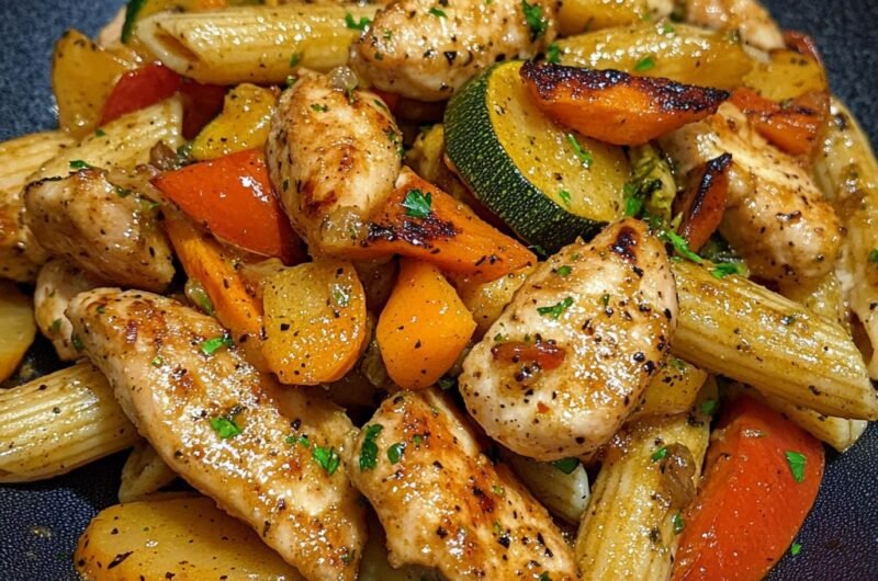 Kurczak z limonką i czosnkiem z makaronem penne warzywnym