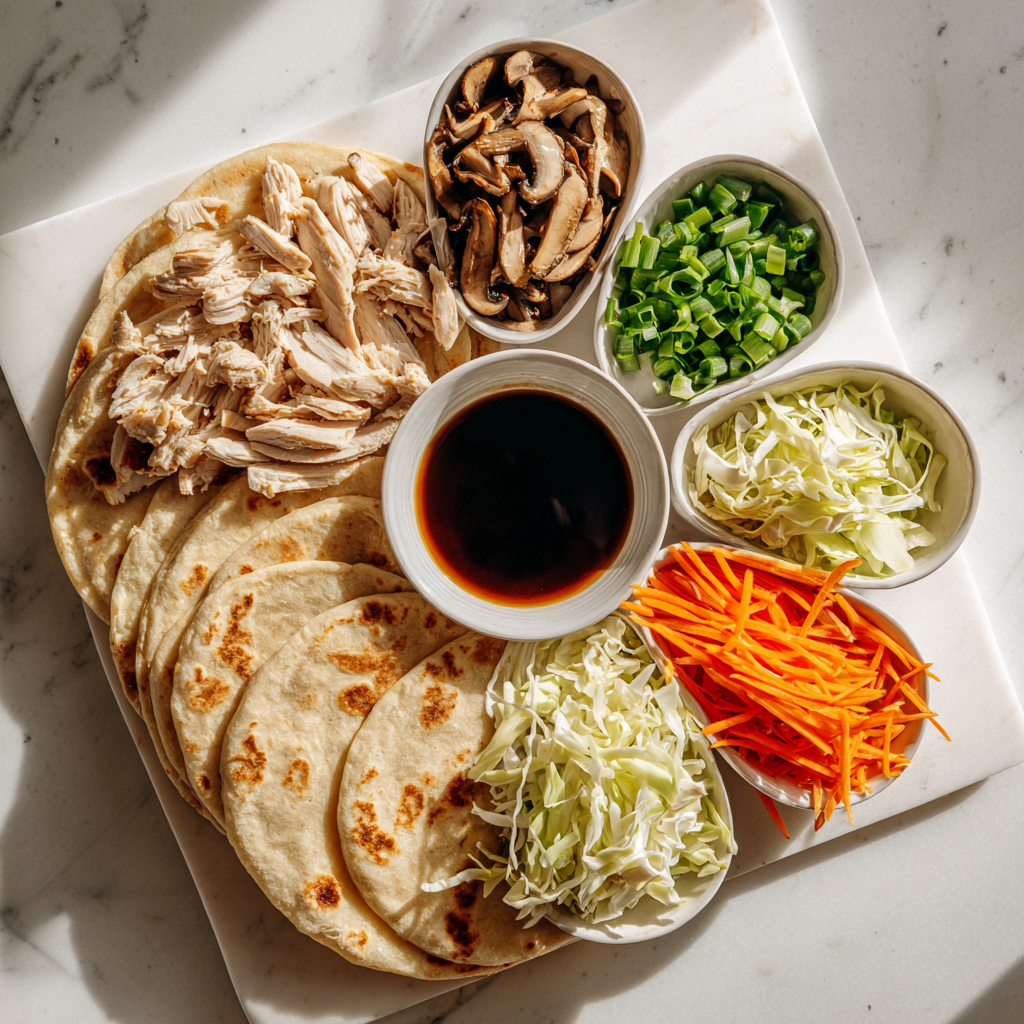 Hoisin sauce is a key component in this recipe, offering a sweet and savory depth. It adds a unique flavor profile that is essential to traditional Moo Shu dishes. - 4-6 Mandarin pancakes or flour tortillas