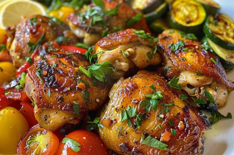 Golden, juicy chicken thighs and caramelized vegetables tossed in a bright lemon-herb marinade—a weeknight hero ready in under an hour.