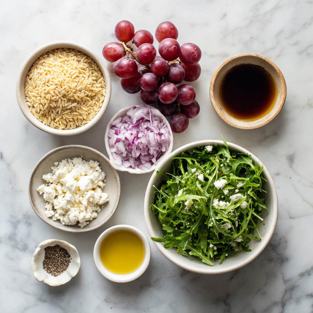 Orzo arugula salad with feta and grapes is a bright, flavorful dish that combines the nutty texture of orzo with the peppery bite of arugula. This salad is not just a side; it can stand alone as a light lunch or dinner option. Perfect for potlucks or easy family meals, it brings a burst of color and flavor that everyone will enjoy.