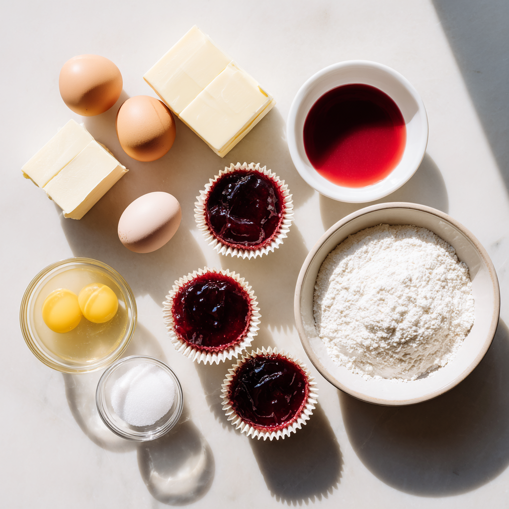 - 1 cup raspberry or strawberry jam for ‘blood’ filling