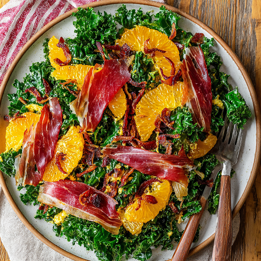 This salad not only looks vibrant but also offers a medley of flavors and textures. The richness of the prosciutto contrasts beautifully with the crisp kale, while the roasted oranges add a bright twist, making it a standout at any table. Whether enjoyed as a light meal or a side dish, it’ll quickly become a fall favorite.
