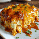 The layers of cheesy goodness meld beautifully with the zesty buffalo sauce, making this bake a crowd-pleaser among family and friends. With a few simple ingredients, you can create a flavorful dish that feels indulgent without too much effort. Whether served over rice or with a side of fresh veggies, every bite is packed with flavor.