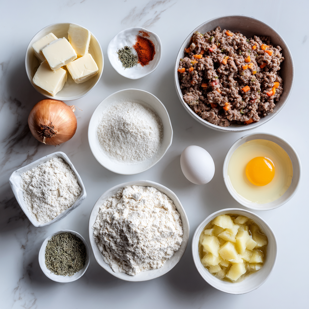 The choice of meat is crucial for deepening the flavor profile of the filling. Each type of meat brings its own character, enhancing the overall taste of the pie. - 1 small onion, finely chopped